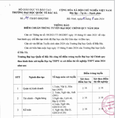 Toàn văn: Thông báo điểm chuẩn trúng tuyển đại học chính quy năm 2024...